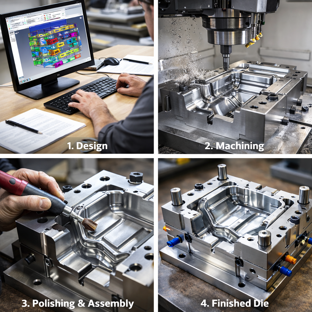 Our design process begins with a clear understanding of the part requirements, material characteristics, and manufacturing process. Using modern 3D CAD modeling and drafting tools, we develop detailed die concepts, component layouts, and manufacturing documentation to support toolmakers and production teams.